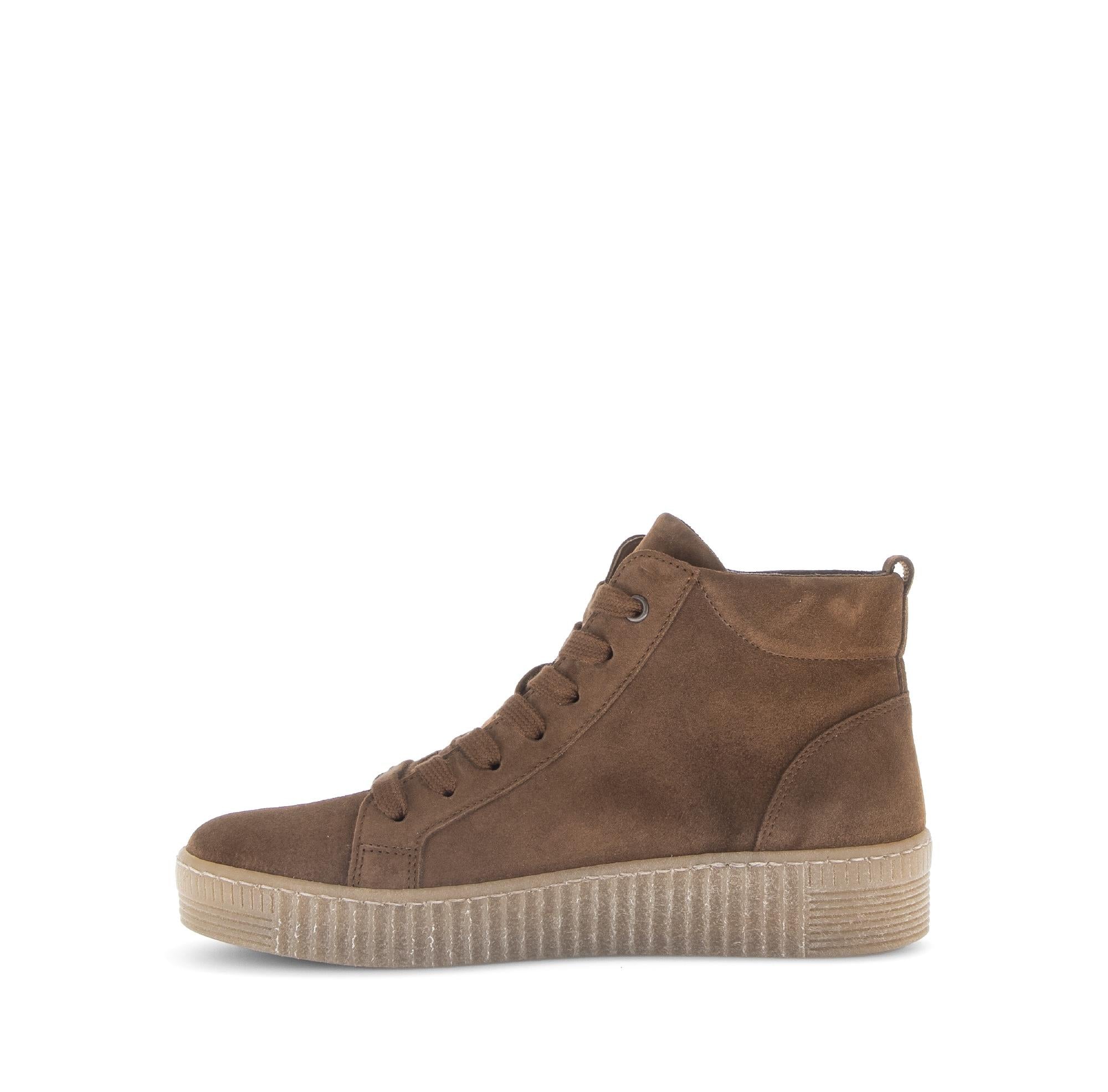 Des baskets montantes au look moderne, pensées pour le confort du quotidien. La largeur Best Fitting offre plus d’espace à l’avant-pied, tandis que la semelle amovible et la doublure micro assurent un climat intérieur agréable. La semelle extérieure en gomme TR, légère et stable, associée à une cambrure de 13 mm et un talon compensé de 3,5 cm, garantit une marche souple tout au long de la journée.