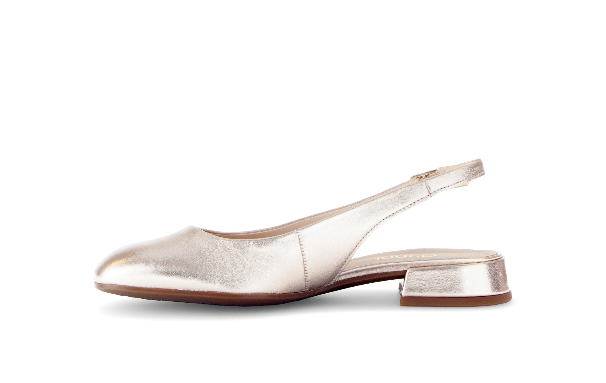 Le cuir métallisé doré apporte une touche de lumière subtile, tandis que la forme carrée du bout souligne une esthétique contemporaine et laisse plus de liberté aux orteils. La doublure cuir assure un confort optimal et une bonne respirabilité, même après plusieurs heures de port.