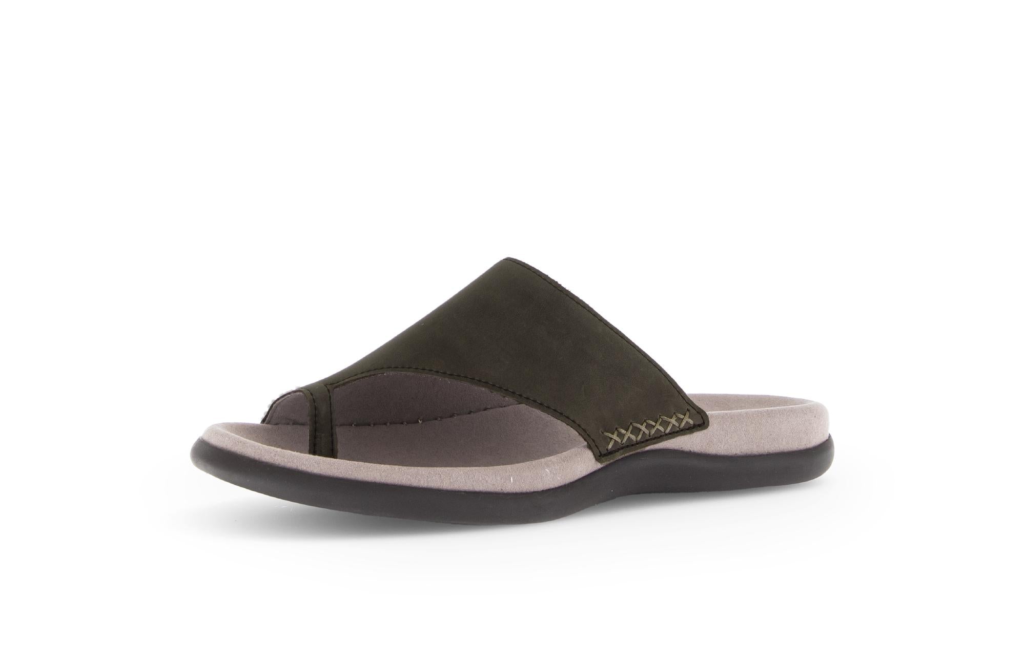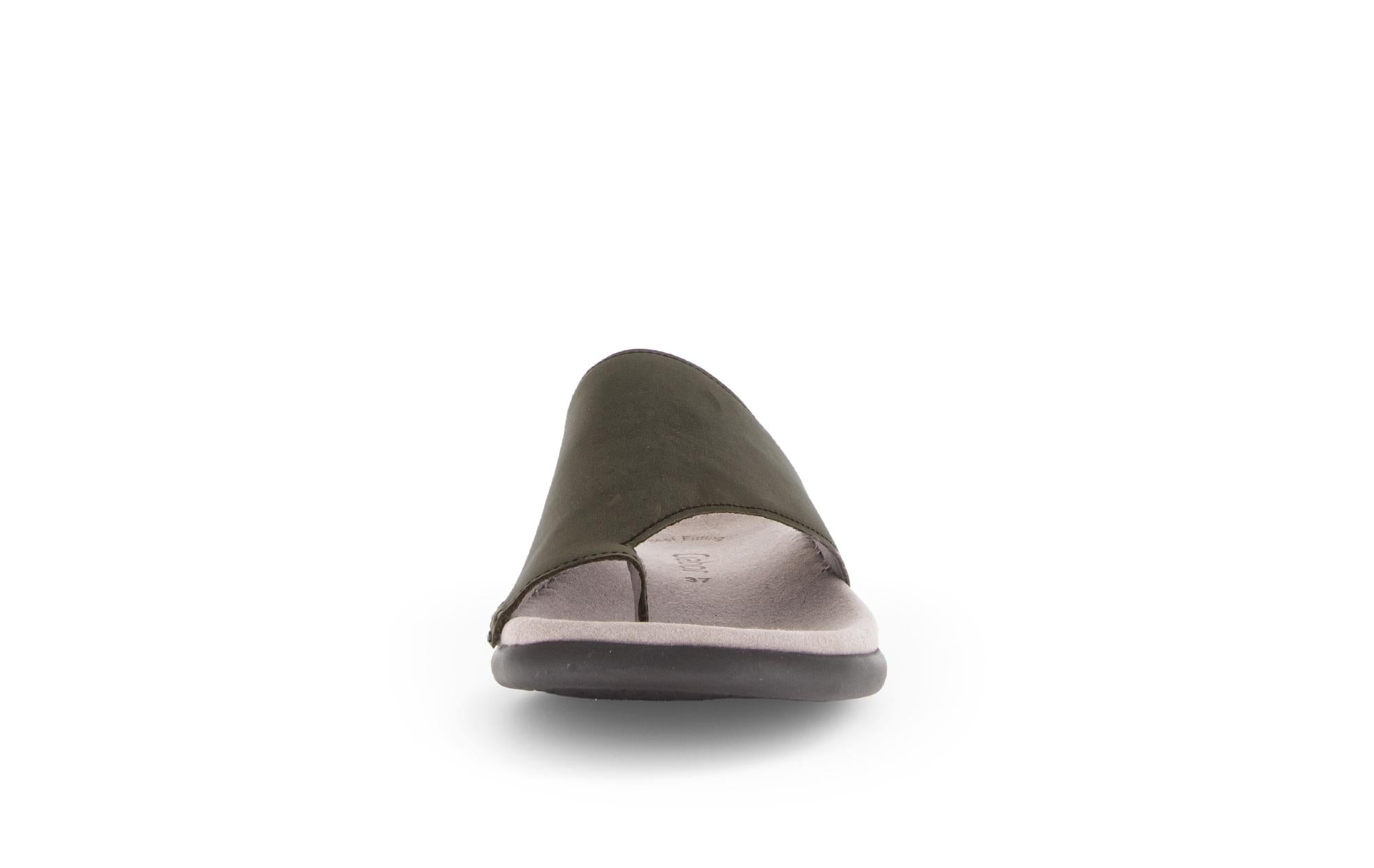 Ergonomie, Confort et Esthétique : c'est la prouesse réalisée par cette mule entredoigt moderne. Best Fitting Gabor - plus de largeur sur l'avant pied pour plus de confort- Première anatomique Micro, semelle gomme latex souple. Un must pour vous accompagner en toutes circonstances !